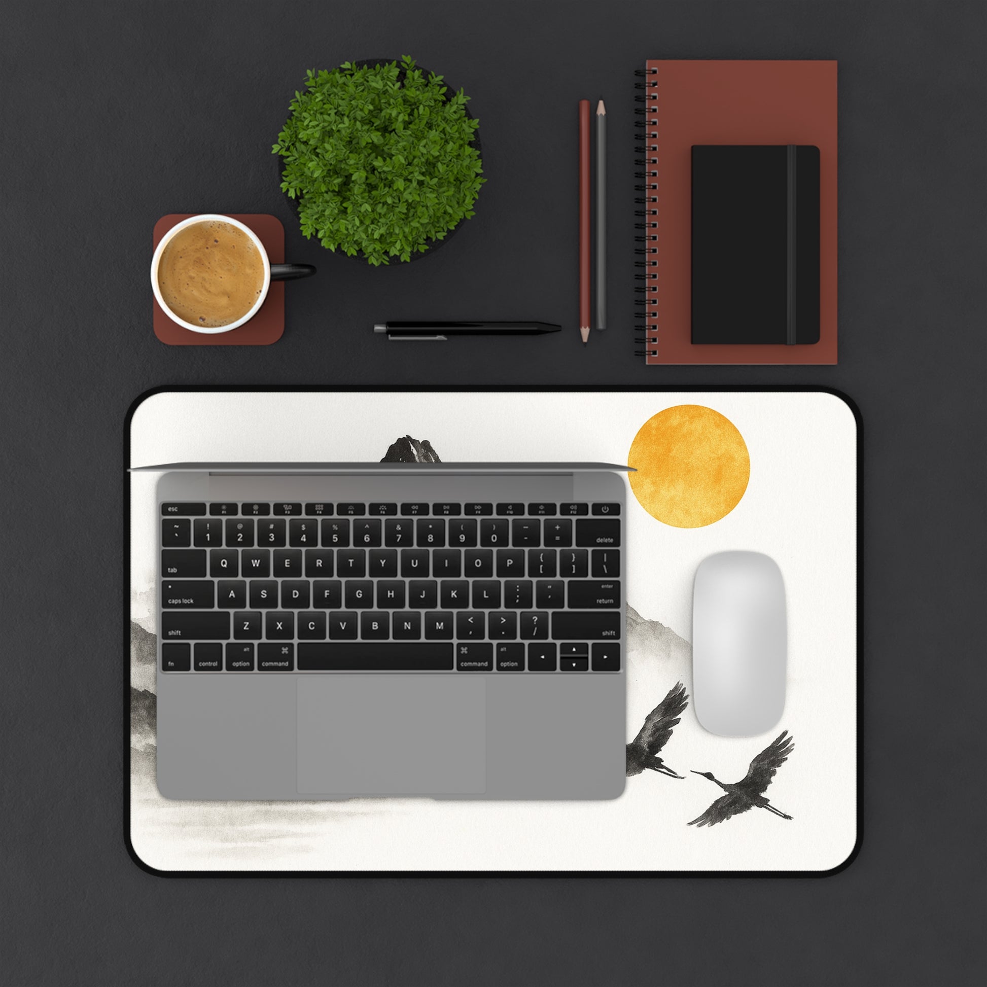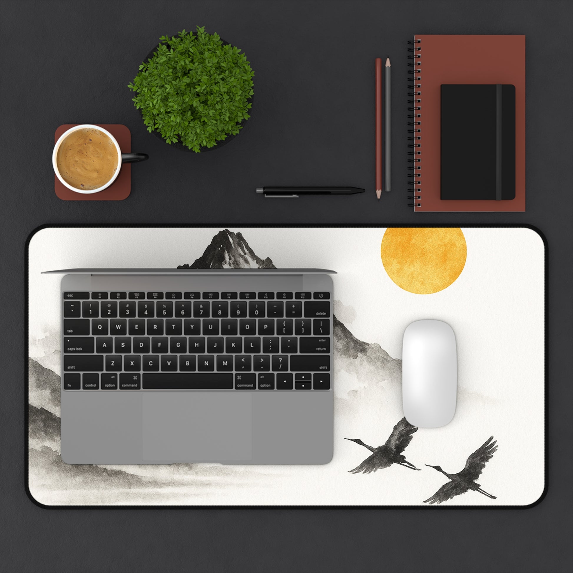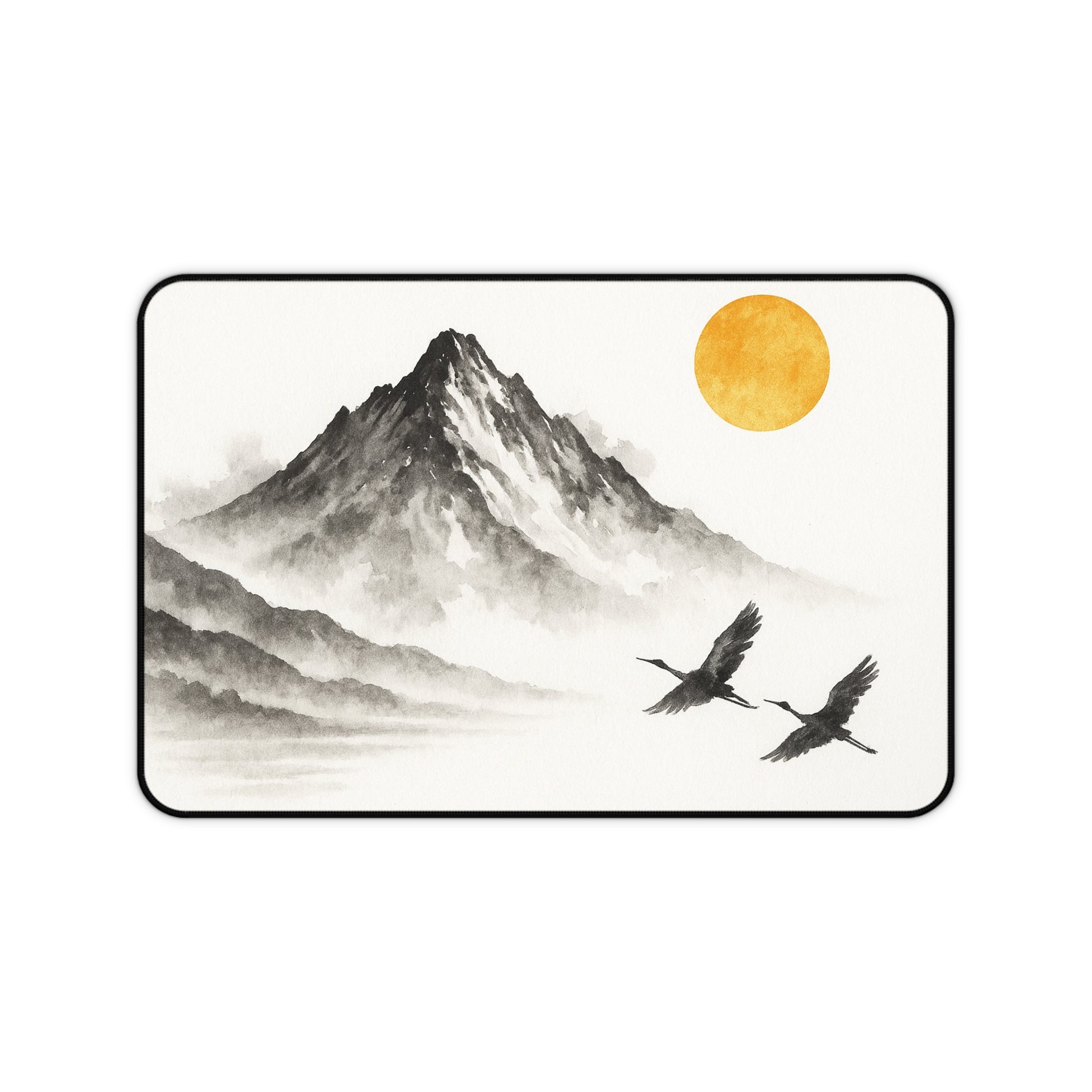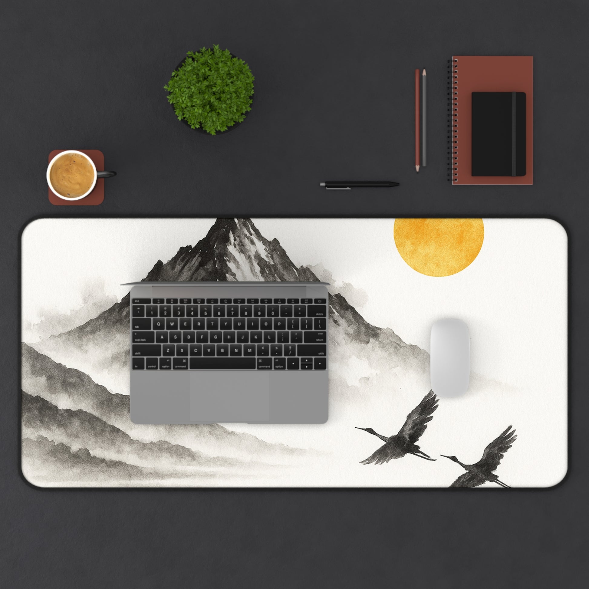Mountain & Crane Desk Mat | Japanese Style Desk Accessory, Office Decor, Gift for Home Office, Minimalist Workspace, Nature Lover