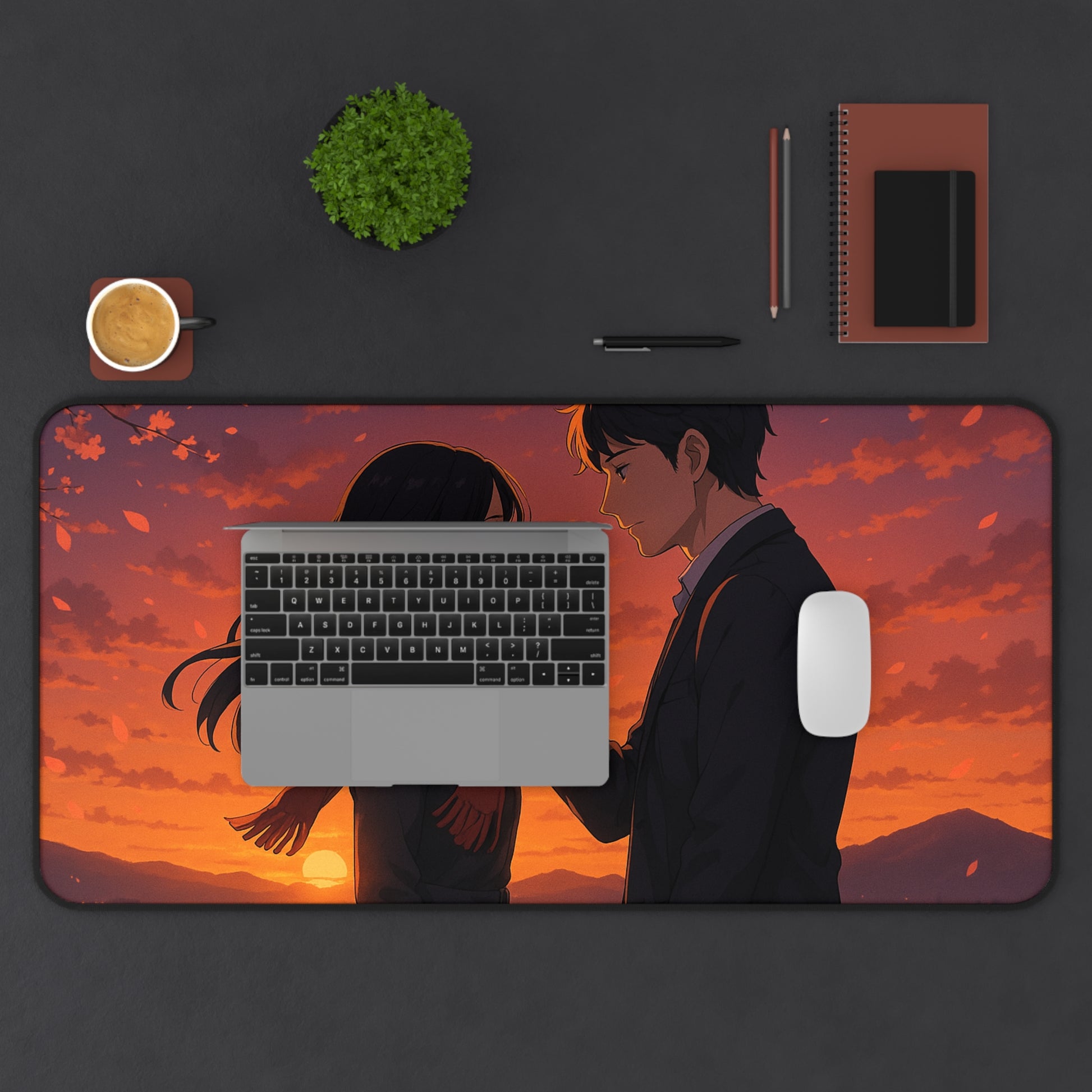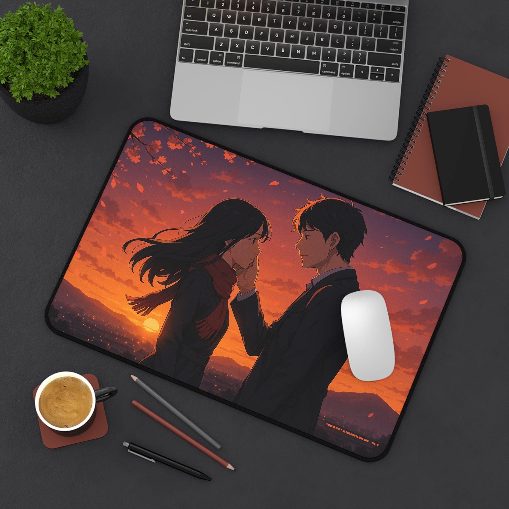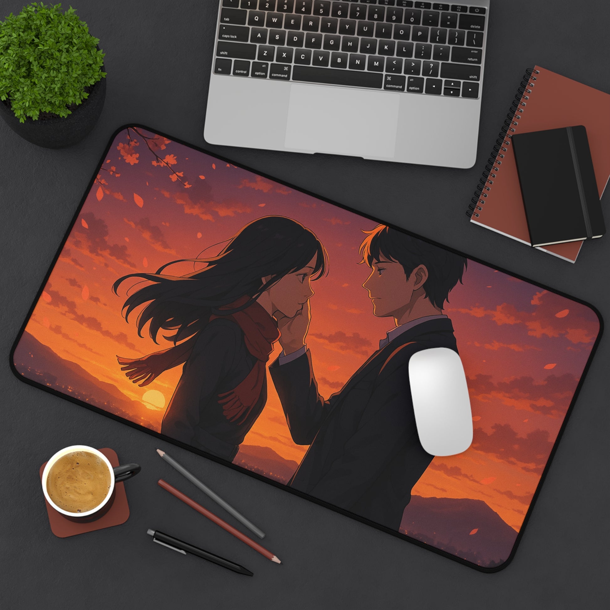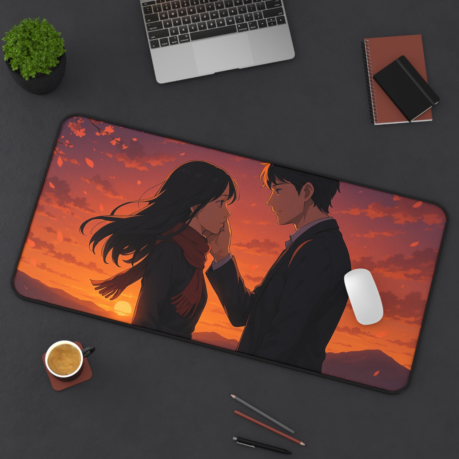 Romantic Anime Desk Mat, Cozy Workspace Decor for Anime Lovers, Unique Gift for Him or Her, Perfect for Home Office, Valentine's Day