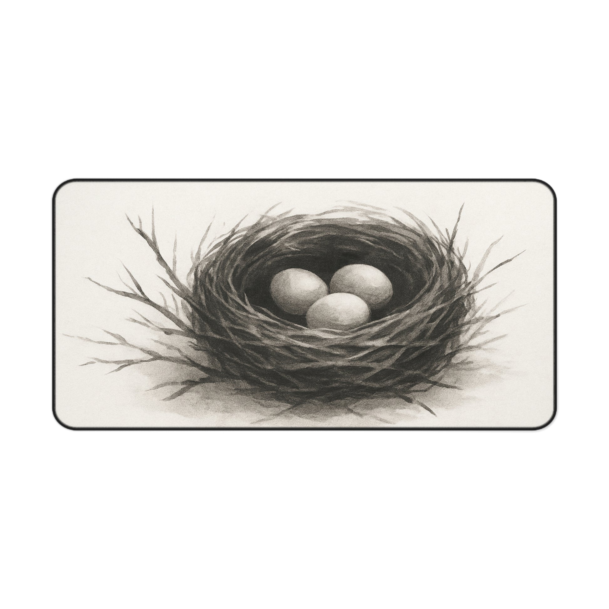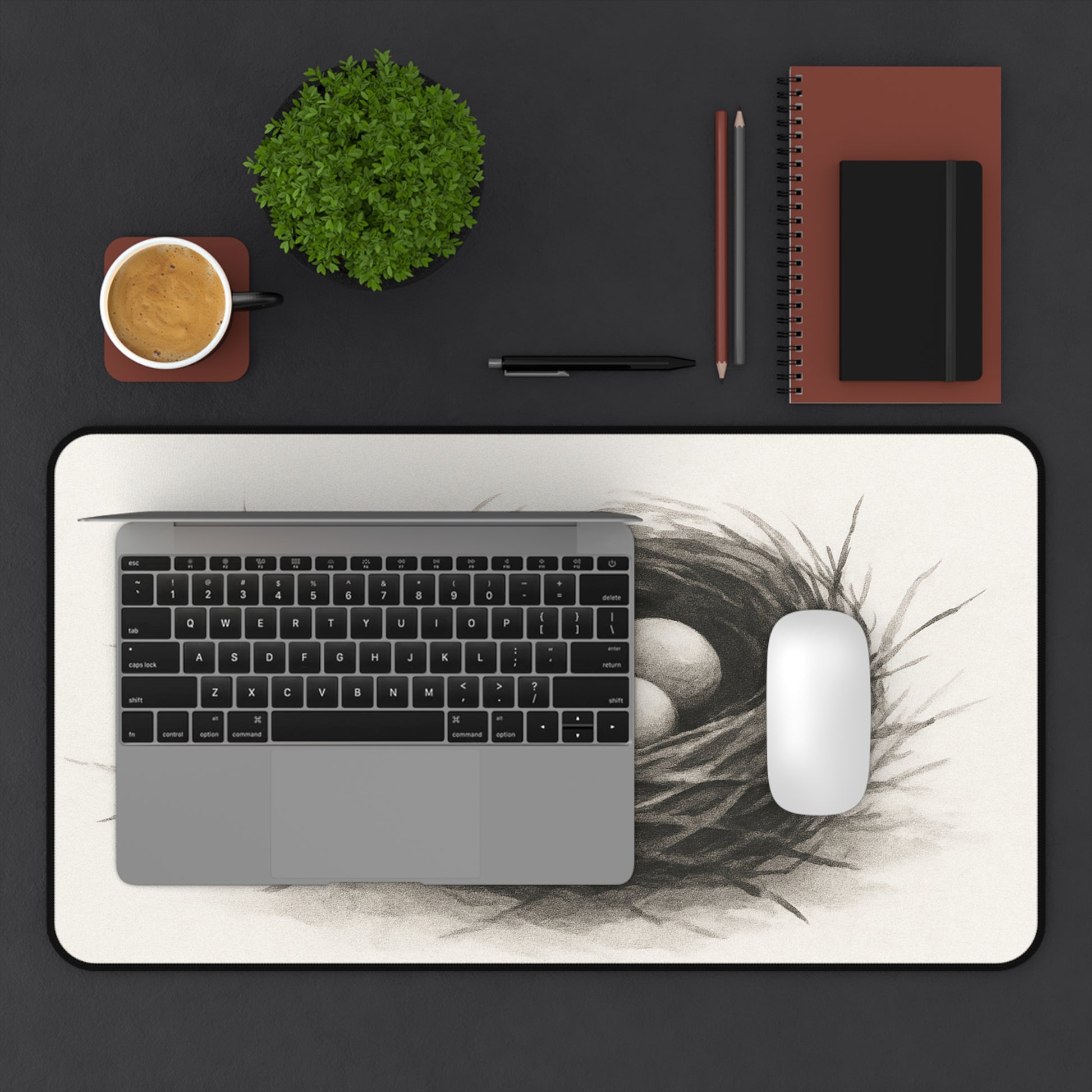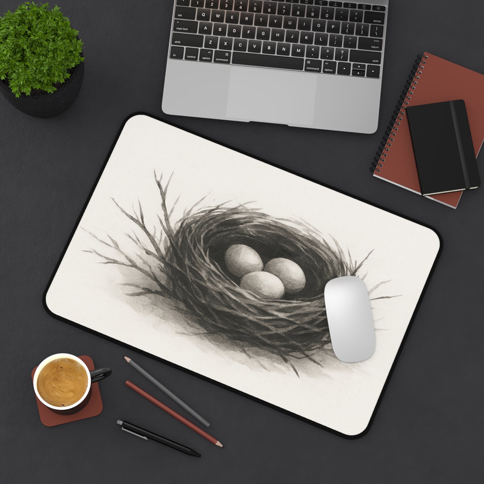 Serene Nest Desk Mat - Cozy Office Decor, Home Office Accessory, Gift for Nature Lovers, Minimalist Workplace, Eggs in Nest Design
