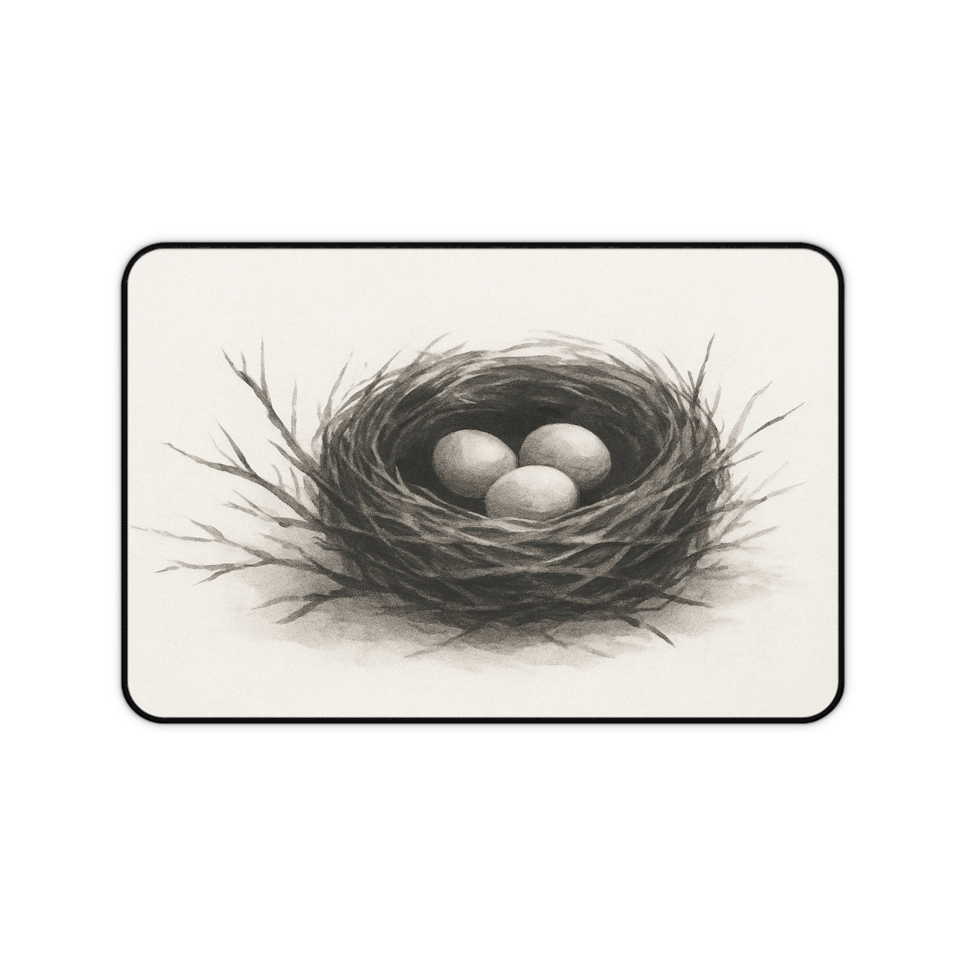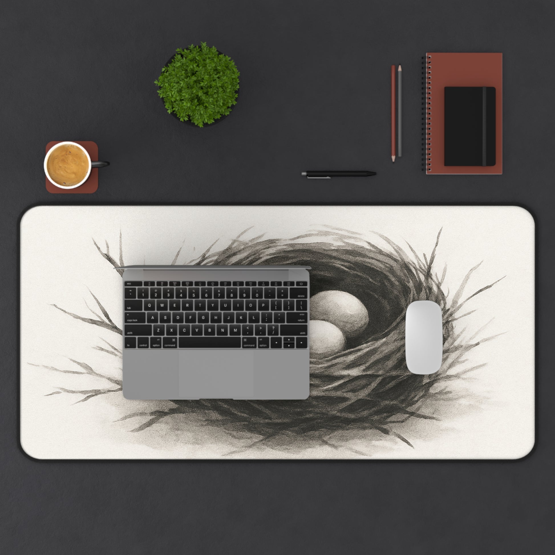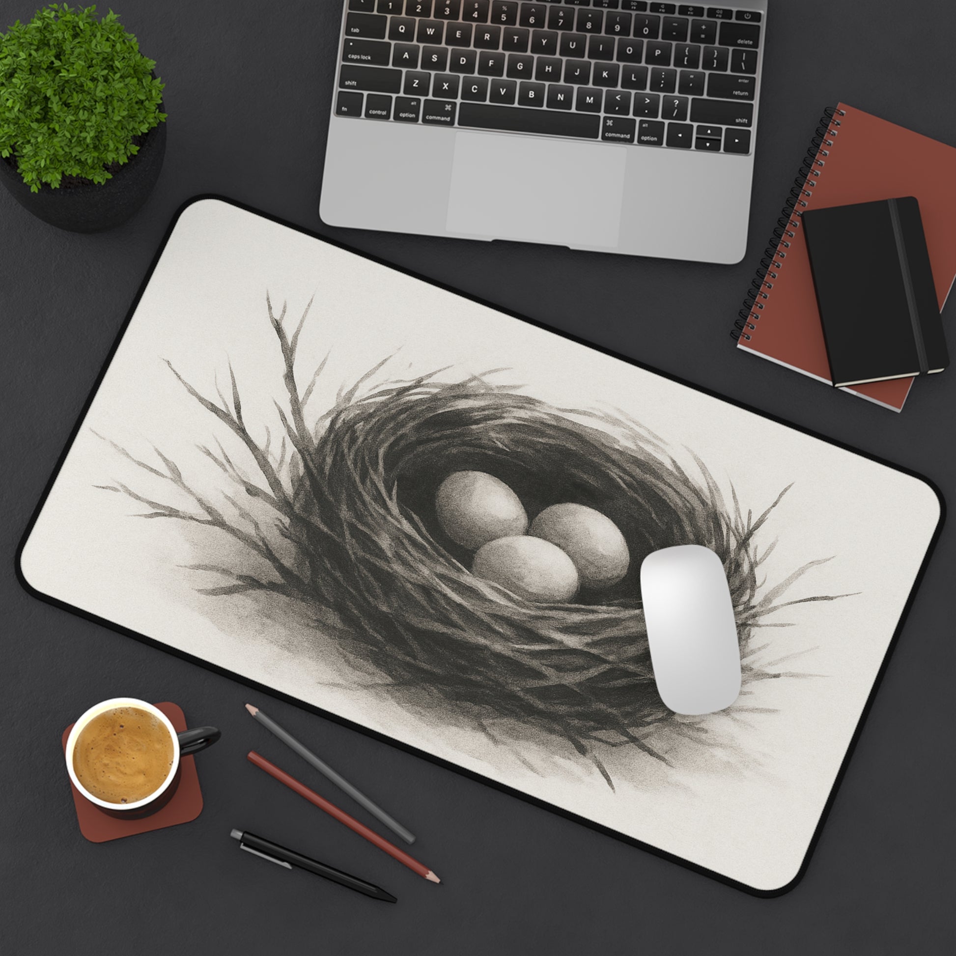 Serene Nest Desk Mat - Cozy Office Decor, Home Office Accessory, Gift for Nature Lovers, Minimalist Workplace, Eggs in Nest Design
