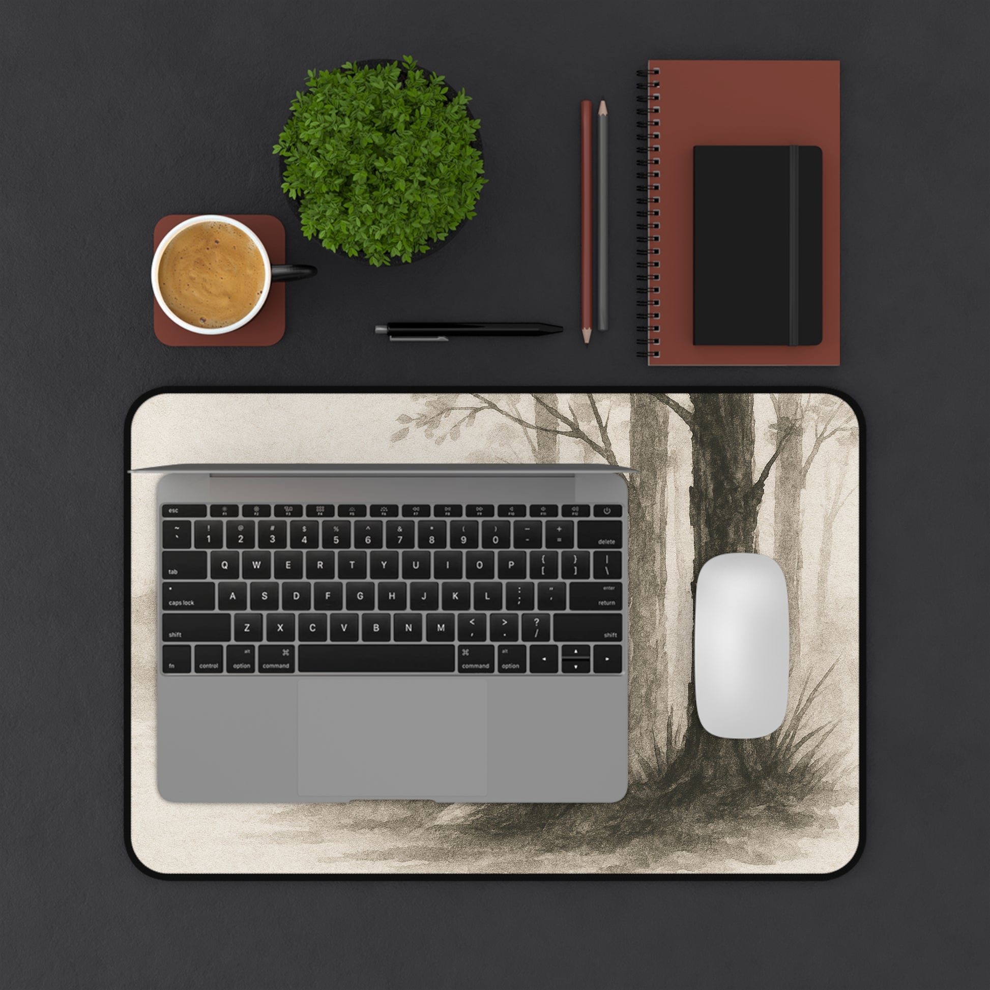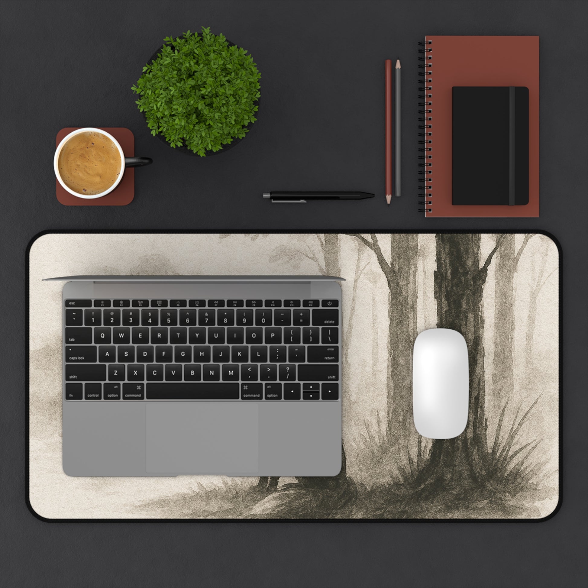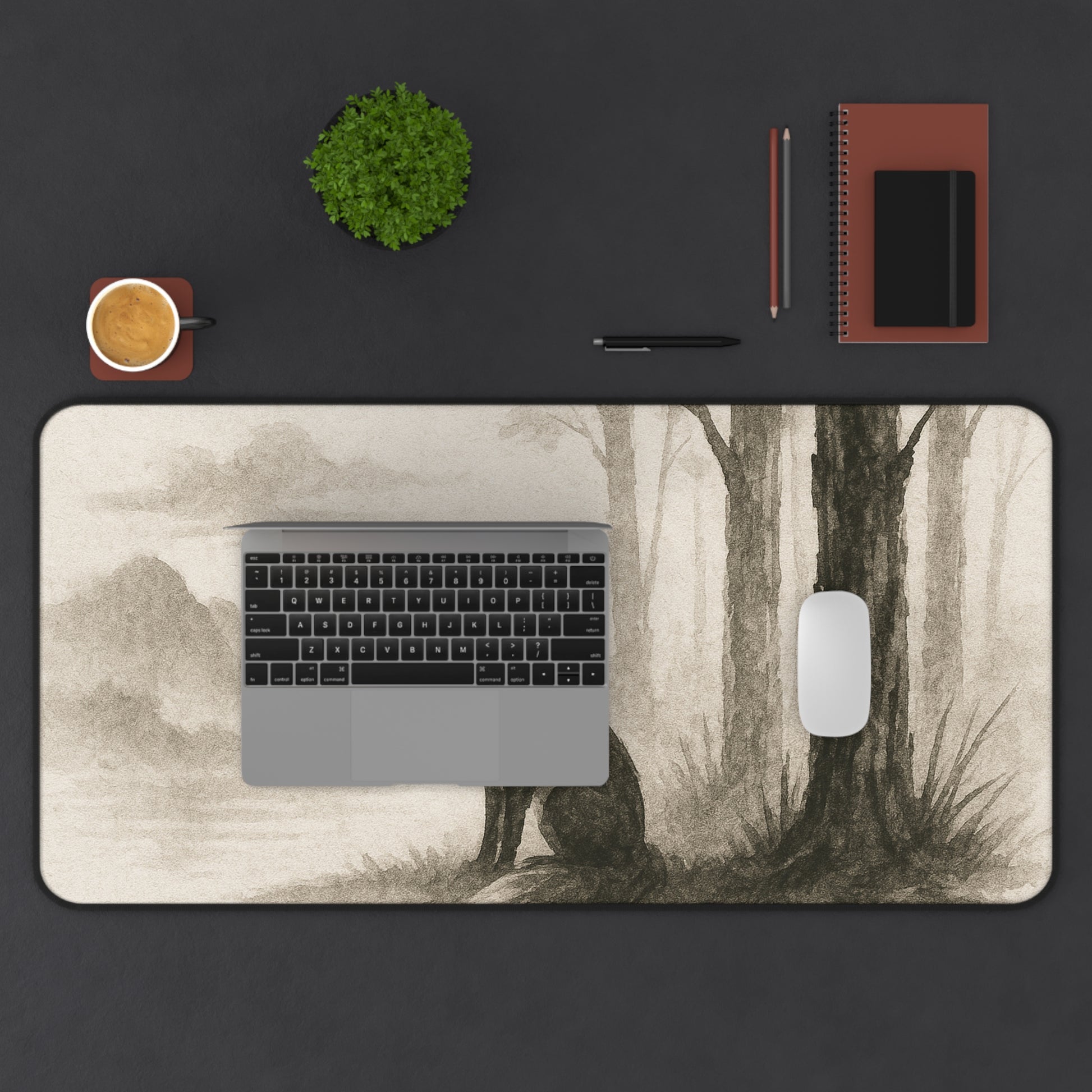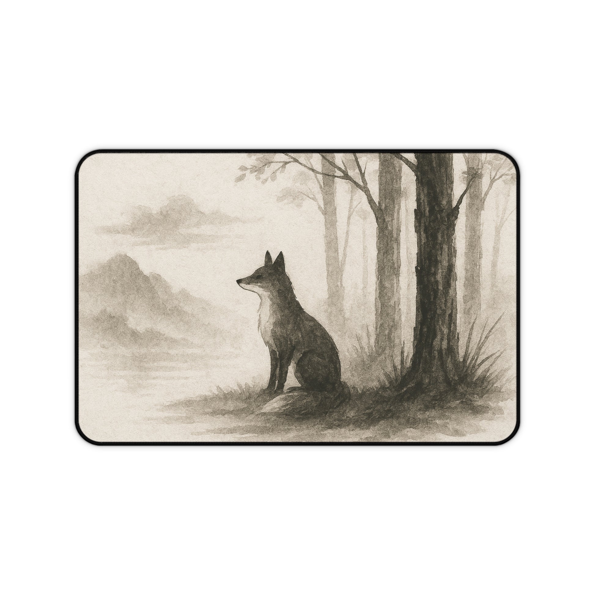 Serene Woodland Wolf Desk Mat - Elegant Office Decor for Nature Lovers