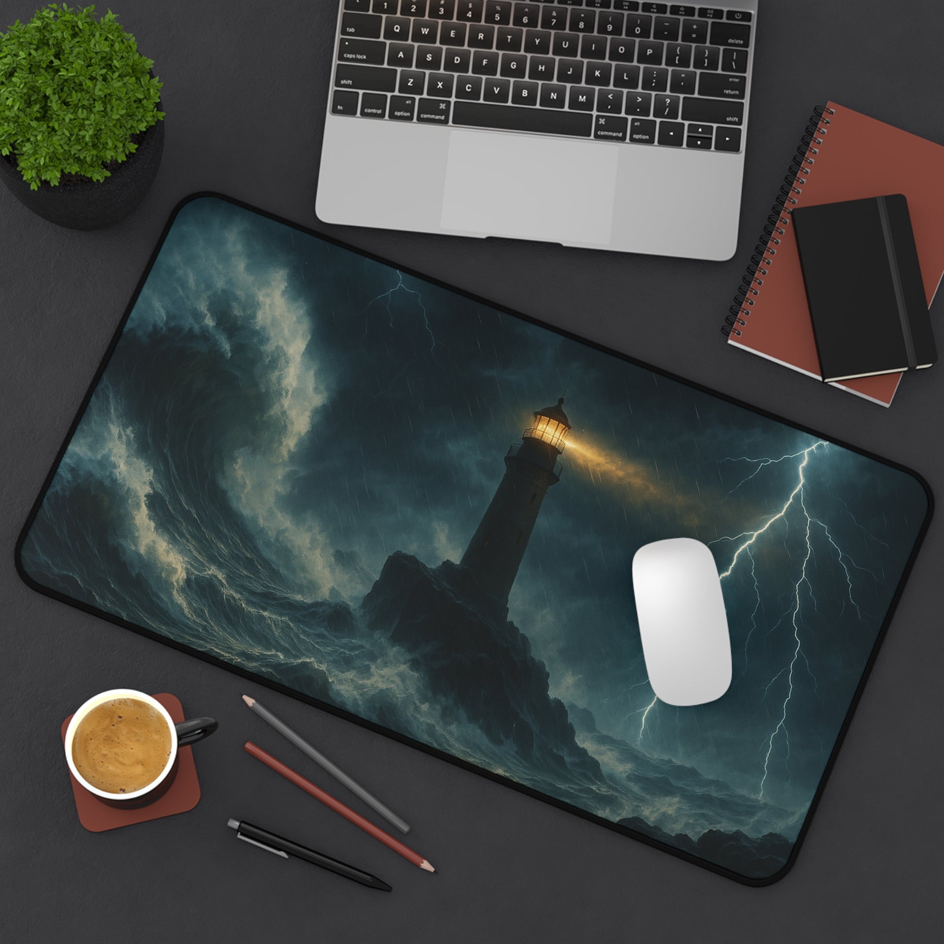 Stormy Lighthouse Desk Mat Perfect for Home Office Gamer